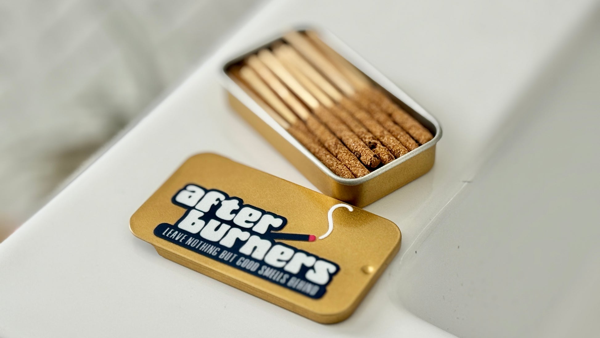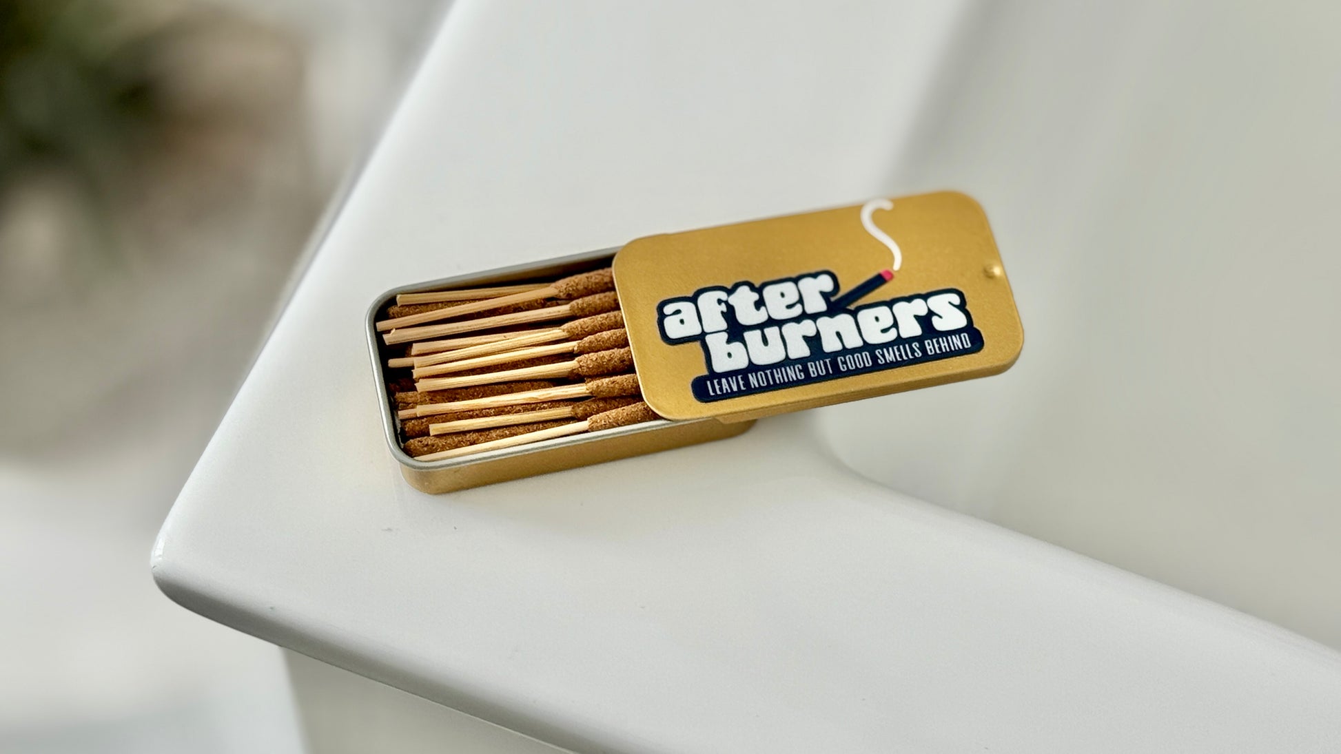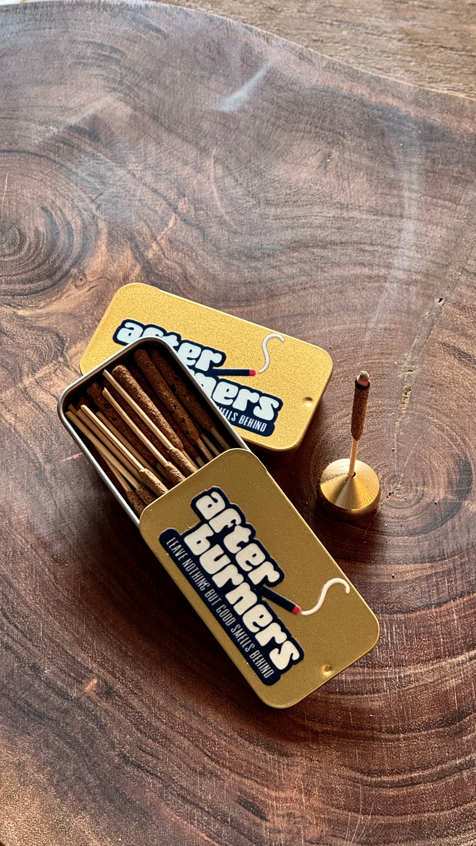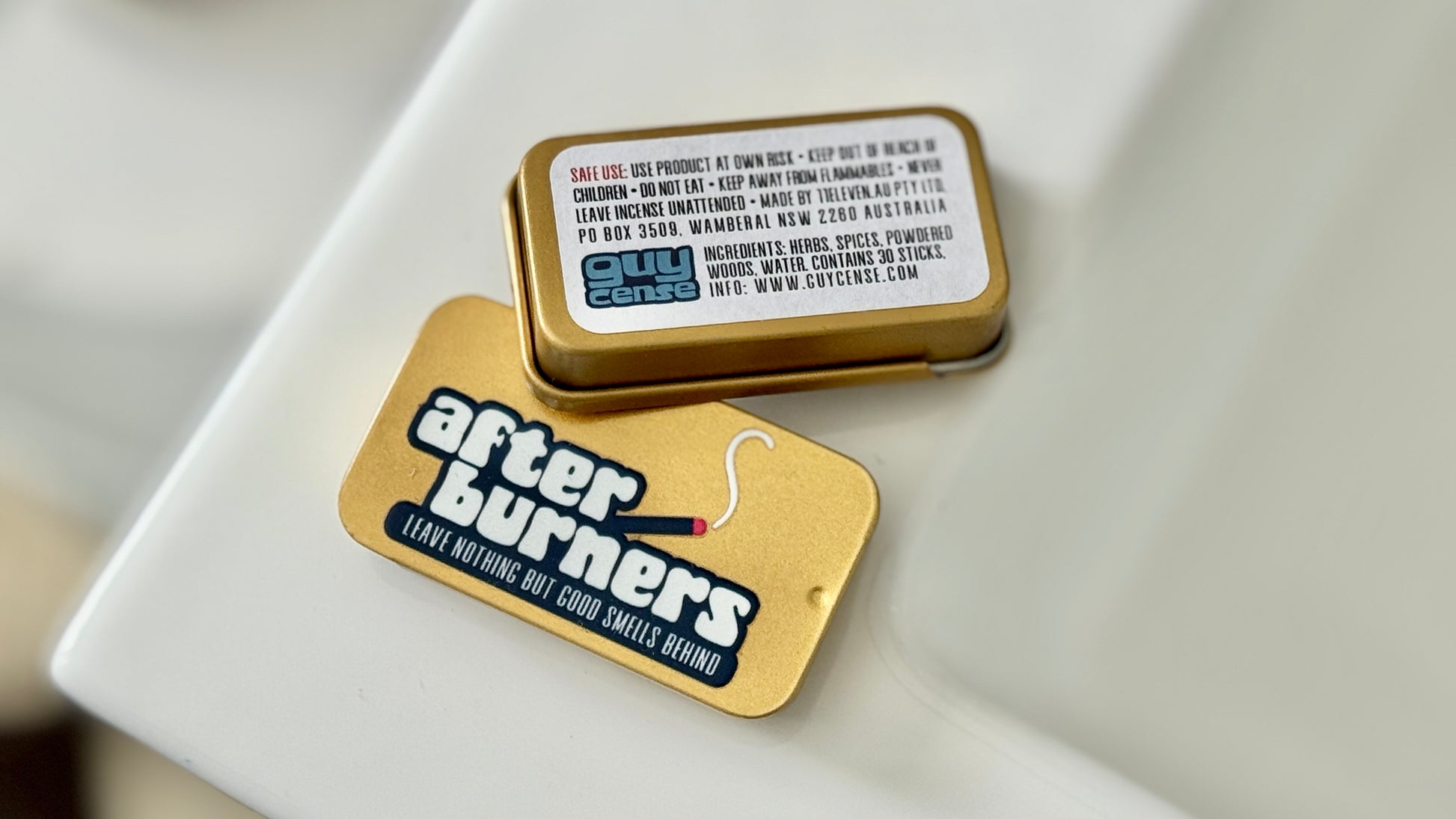 This bundle includes 1 x After Burner tin (30 incense sticks) plus a BONUS brass incense holder. After Burners are uniquely crafted tiny incense sticks designed to burn for around 4 minutes, completely clearing any stubborn toilet odours and leaving a fresh, cinnamon spiced scent that's not over-powering or sickly sweet like so many sprays can be. Enough in one tiny tin for a month of smelly dad business!
