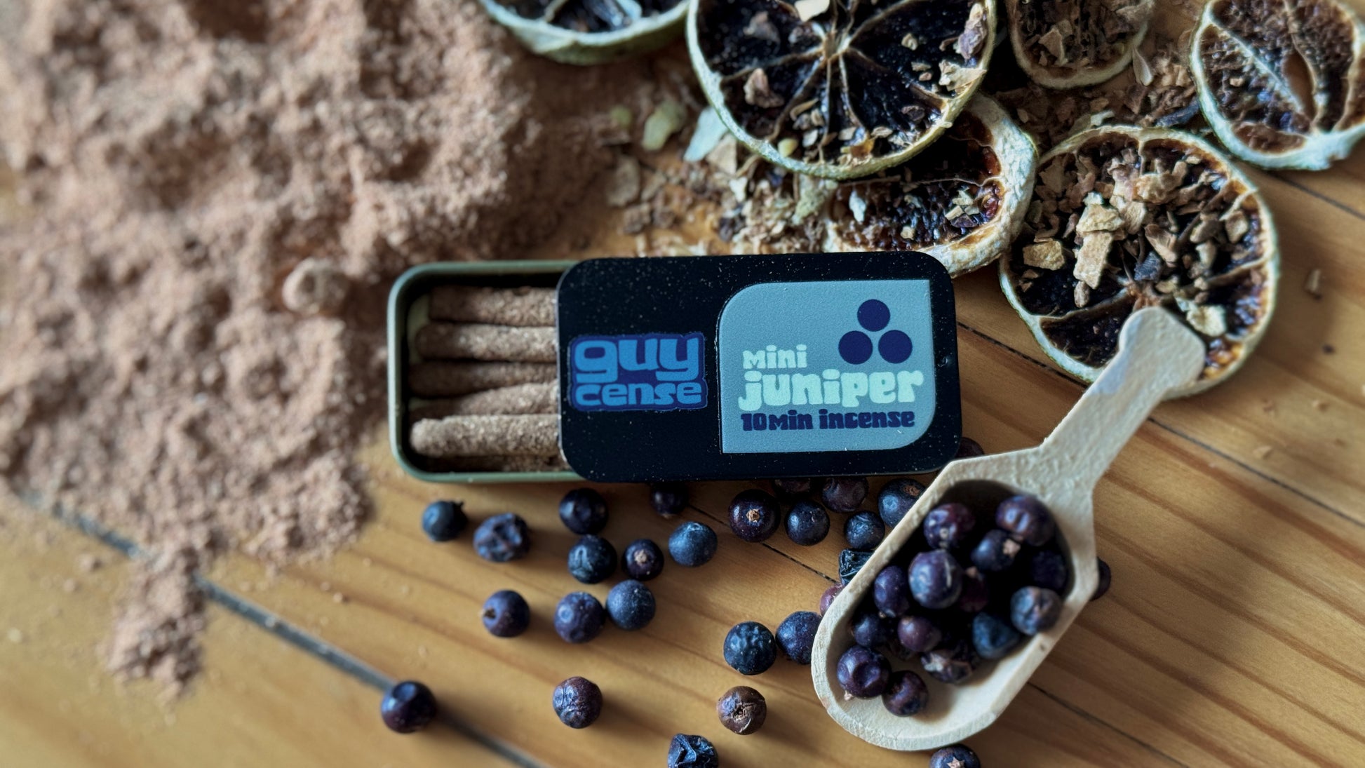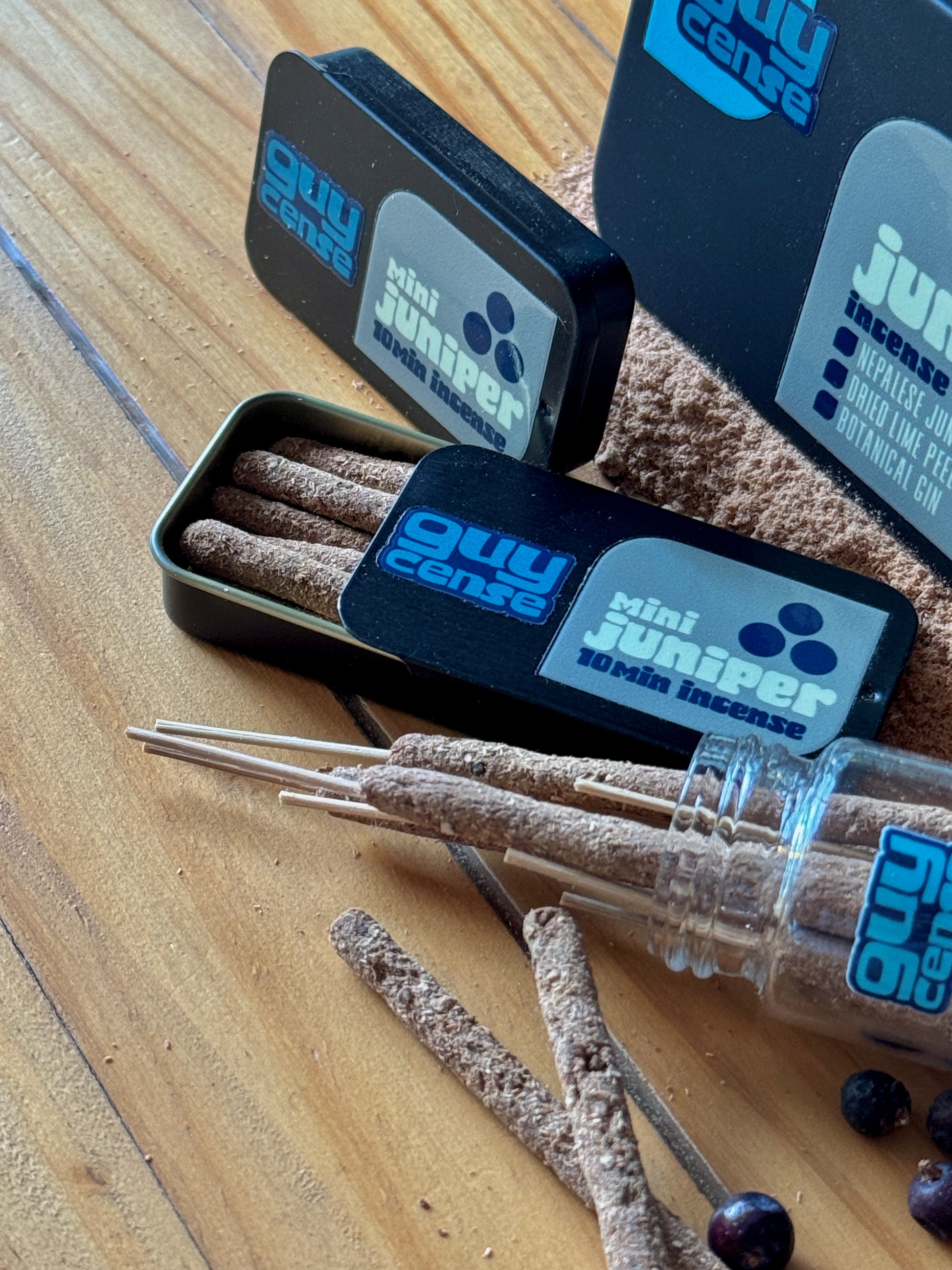 Expect the unexpected. Biscuity, curiously balsamic and resinous. Packaged inside a teeny sliding metal tin, you'll be ready to set the mood wherever it's needed most. Each tin holds 10 x mini sticks, with each mini stick burning for around 10 minutes!