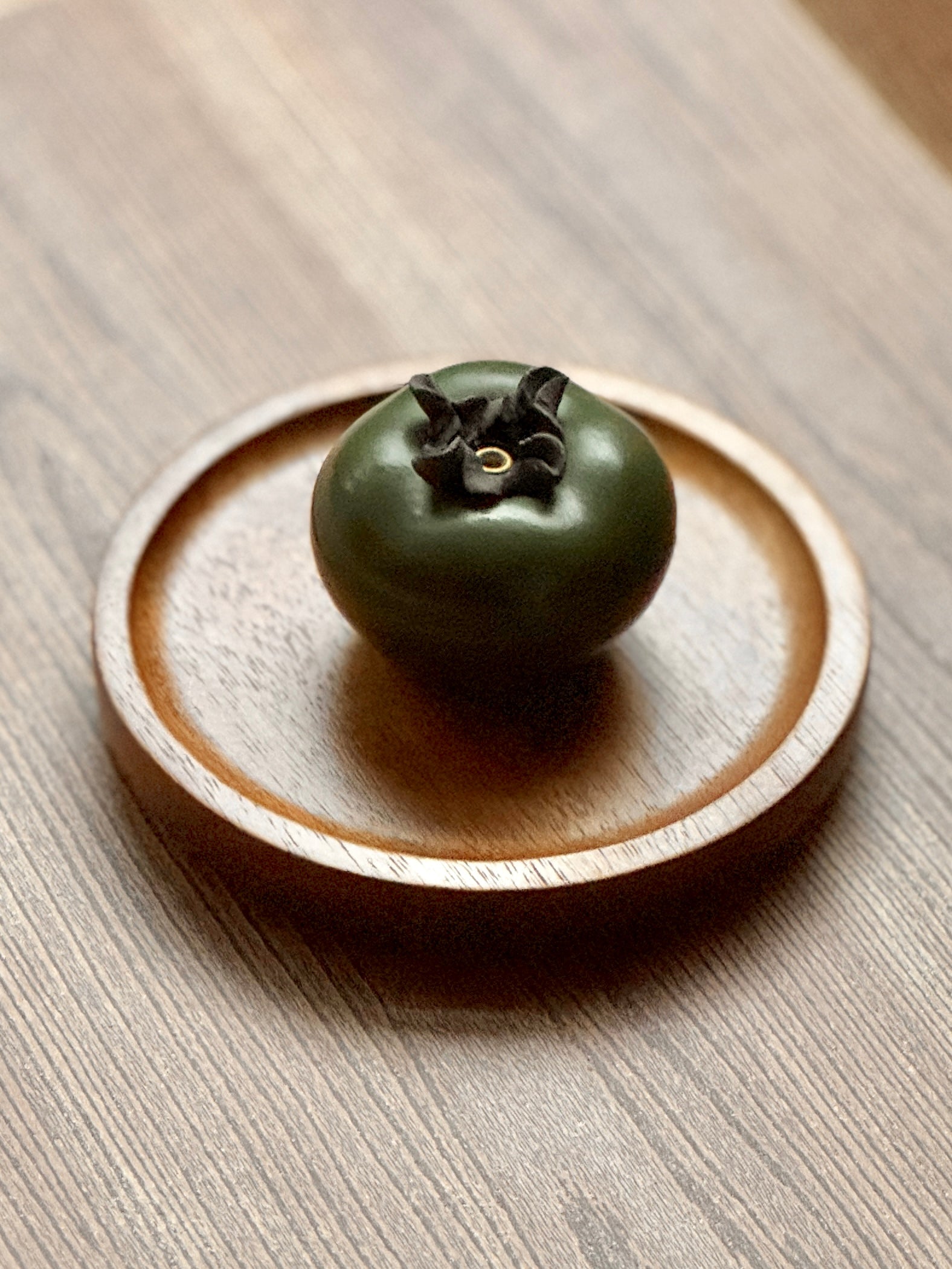 I adore this one! A perfect little chunky tomato disguised to hold an incense stick right in it's centre.. This one's ceramic and painted in a low sheen finish. Use as is or pair with our Wooden Mini Plate (additional) as an ash catcher for your incense sticks. Measures 4.5cm wide by 4cm high.